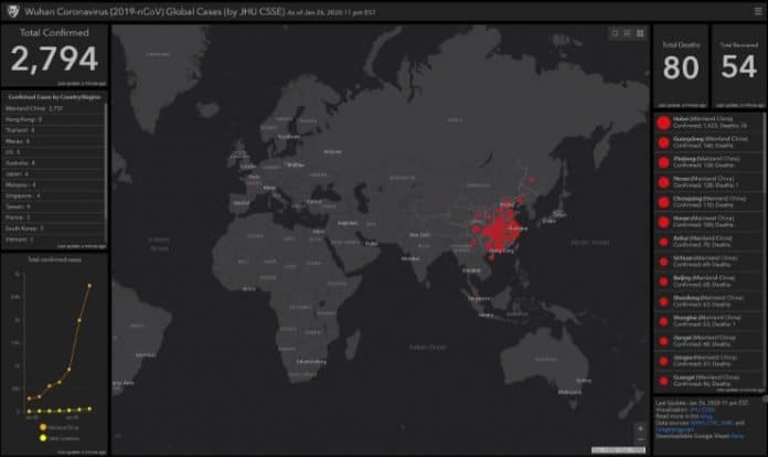 The Center for Systems Science and Engineering креира алатка која овозможува да во реално време се следат информациите за ширењето и статусот на овој вирус секаде во светот. Прикажани се бројки на сите потврдени случаеви на заболени лица, тие се поделени и по земја, а бројките покажуваат и бројка на луѓе за кои се сомнева дека го имаат вирусот, тие кои се имаат излечено, како и тие кои починале.