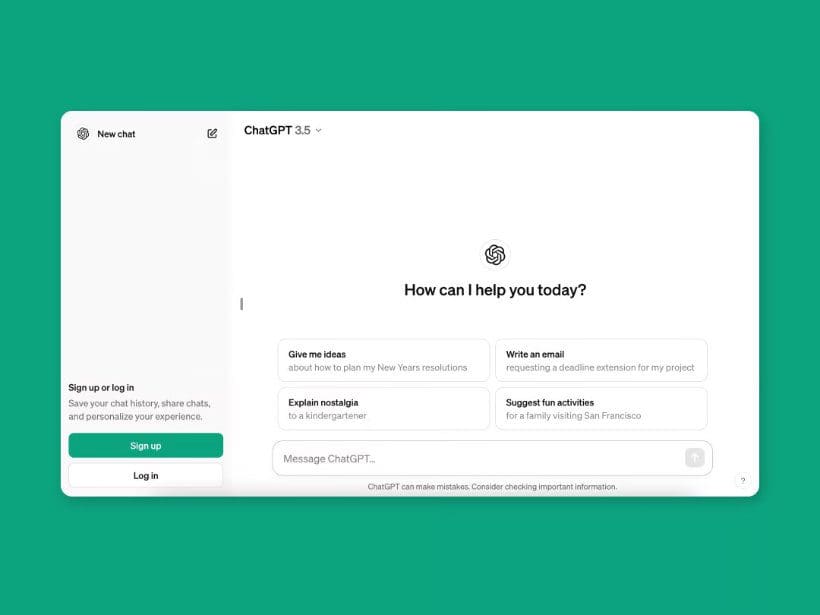 Како и досега, до ChatGPT може да се пристапи преку chat.openai.com, по што веднаш се добива пристап до можност за разговор, а тука е и можноста за најава или креирање на нова сметка.