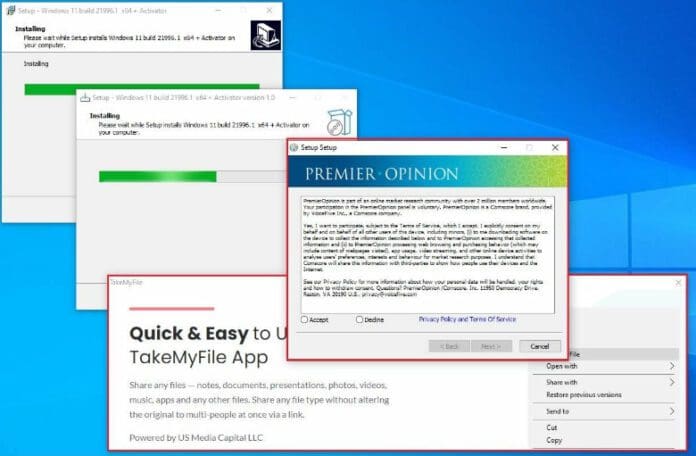 Од Kaspersky имаат откриено дека многу од ваквите неофицијални инсталации на Windows 11 воопшто не се само „кракувани“ верзии од оперативниот, туку инсталации на малициозен софтвер кој нема да го инсталираат новиот оперативен систем од Microsoft. Корисниците наместо тоа ќе добијат малициозен софтвер кој во некои ситуации е безопасниот „adware“, но во некои ситуации посериозен софтвер составен од „тројани“, софтвер кој ги краде лозинките на корисникот, „exploits“ и слично.