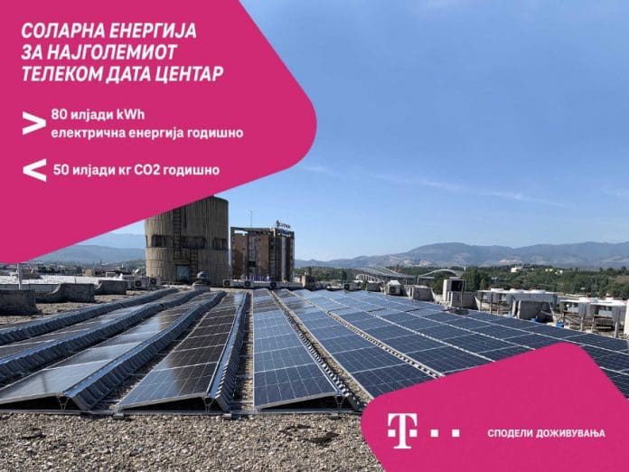 Македонски Телеком постави сопствен систем за производство на енергија од сончево зрачење на најголемиот дата центар во Скопје. Системот се состои од 148 соларни панели и инвертор на површина од 300 m² на покривот на ТК објектот во центарот на Скопје и годишно ќе произведува повеќе од 80 илјади kWh зелена електрична енергија за сопствени потреби.