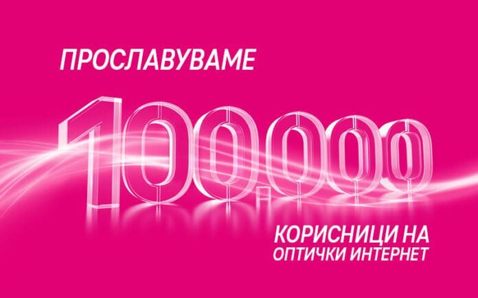 Македонски Телеком прославува 100.000 корисници на оптика коишто, по тој повод, ќе можат да активираат поголеми оптички брзини без дополнителен надомест. Приватните корисници ќе можат да ги активираат следните брзини во зависност од интернет пакетот: корисниците на интернет пакетот S, наместо 20 Mbps ќе добијат брзина од 60 Mbps, оние на M наместо 60 Mbps ќе добијат 100 Mbps, додека оние на L наместо 100 Mbps ќе добијат 300 Mbps, а на XL наместо 300 Mbps, 1GB.