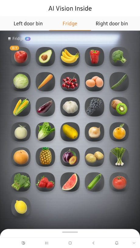 За подобри искуства во кујната, фрижидерот 2024 Bespoke Flex™ со 4 врати со AI Family Hub™+ содржи различни иновативни технологии. Една импресивна нова функција е AI Vision Inside, која преку паметна внатрешна камера може да ги препознае артиклите што се ставени во и надвор од фрижидерот. Исто така, тој е опремен со технологија „Vision AI“, која може да идентификува до 33 различни артикли свежа храна врз основа на предефиниран сет на податоци кои опфаќаат приближно еден милион фотографии со храна. Со достапнипот список со храна, кој може да се уредува на екранот Family Hub™+, корисниците можат рачно да додаваат информации за рокот на траење на артиклите за кои би сакале да водат евиденција, а фрижидерот испраќа предупредувања преку својот LCD екран од 32 инчи за истекување на рокот на траење на одреден датум.