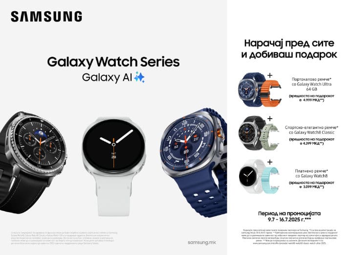 Galaxy Watch 8, Galaxy Watch 8 Classic и новиот Galaxy Watch Ultra се достапни за претходна нарачка почнувајќи од денес, а општата достапност започнува на 25 јули.