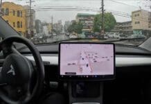 Видео од Tesla автомобил како самиот вози низ град по дожд го покажува развојот...