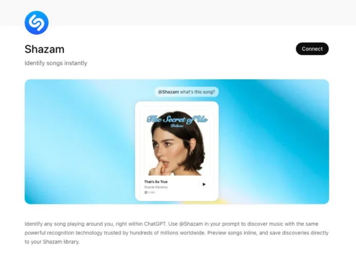 Апликацијата ChatGPT од сега нуди можност за идентификација на музика преку интеграција со сервисот Shazam, кој е во сопственост на Apple. Според информациите, корисниците можат да откријат која песна се пушта во нивната околина без да го напуштат разговорот со вештачката интелигенција.