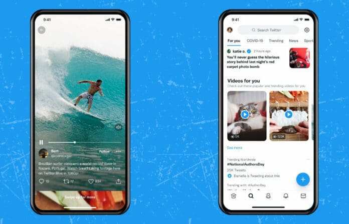 Twitter се приклучува на трендот на прикажување на видеата на целиот екран и нивно „бесконечно“ разгледување со повлекување нагоре, нешто што стана популарно преку TikTok, а подоцна целосно беше прифатено со воведувањето на Reels на Instagram и Facebook.