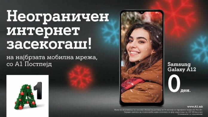 Скопје, 3.12.2021г. – А1 Македонија со задоволство најавува збогатување на новогодишната кампања и продолжува со неверојатно атрактивни поволности овојпат за корисниците на мобилната телефонија. Со најновата промоција, корисниците на мобилната телефонија за прв пат добиваат единствена можност за неограничен мобилен интернет вклучен во тарифата и тоа засекогаш.