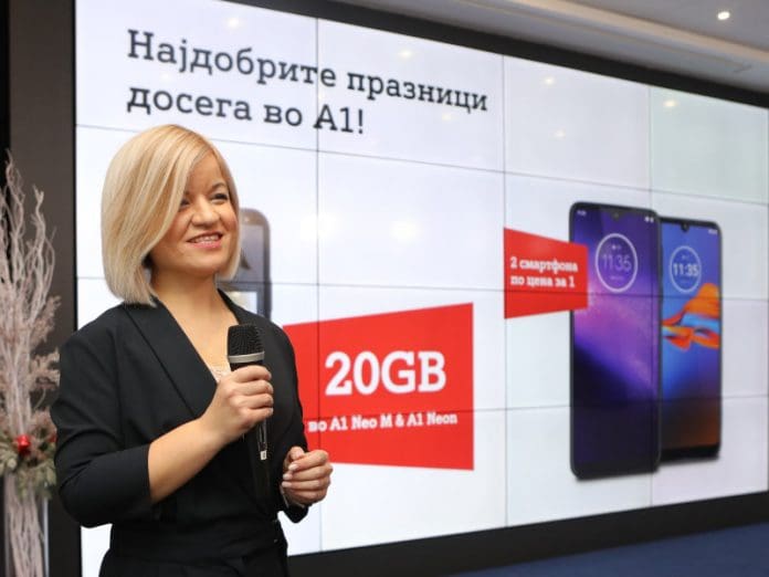 „Прилагодувајќи се на новите навики и потреби на корисниците, со новогодишната понуда овозможуваме уште повеќе интернет и повеќе забава. Со цел да придонесеме за уште поопуштена празнична атмосфера, подготвивме уште едно изненадување. Корисниците на А1 Combo добиваат интерактивна телевизија, интернет и мобилна линија за само 1299 ден./месечно и тоа без обврзувачки договор. Дополнително, имаат можност да изберат смарт андроид телевизор на 48 месечни рати, а преку апликацијата Мојот А1 ќе можат да изберат еден од трите дополнителни пакети (HBO, Digitalb или Pink) кој ќе може да го користат бесплатно во период од 3 месеци. Веруваме дека најновата промоција на А1 ќе придонесе за многу забава во семејствата на корисниците и сето тоа по најповолни услови“ – изјави Елена Панова, Директор на продажба и маркетинг за приватни корисници во А1 Македонија.