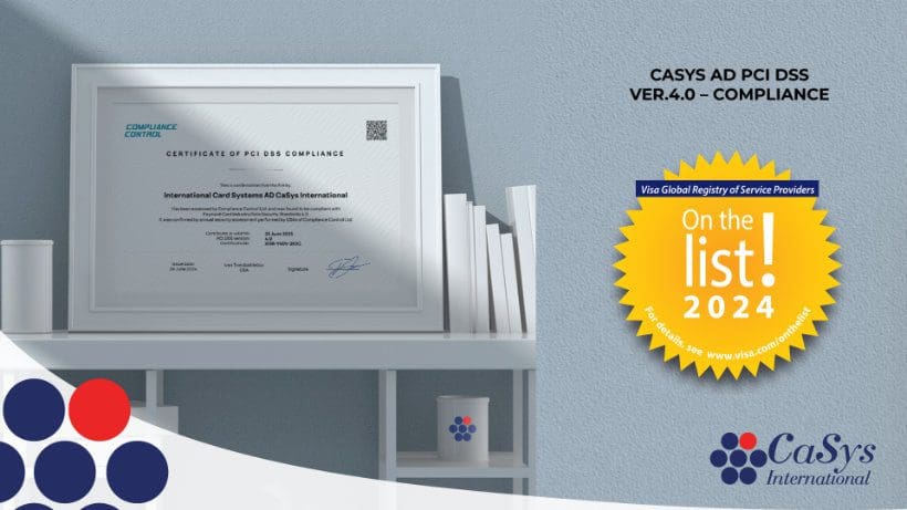 Единствениот центар за обработка и име од доверба во индустријата за плаќања успешно го помина процесот на сертификацијата за стандардите за безбедност на податоците во индустријата за платежни картички (PCI DSS) Ver. 4.0, која е задолжителна глобално од 31 март 2024 година. Оваа сертификација не само што ја илустрира посветеноста на КаСис кон безбедноста, туку и го зајакнува статусот на компанијата како водечки провајдер на услуги на глобалниот регистар на Visa / Mastercard.
