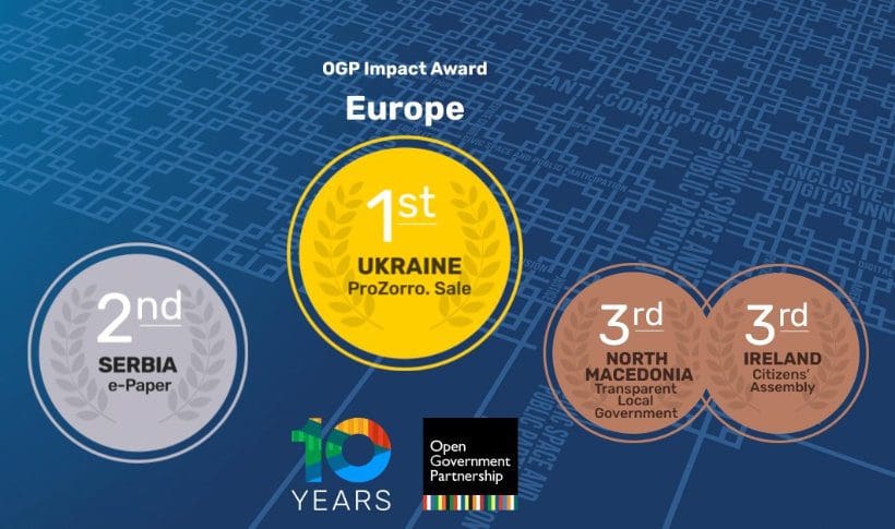 Скопје, 17 декември, 2021 – Во конкуренција на повеќе од 100 апликации, иновативните алатки за поголема транспарентност и отчетност на општините во земјава ја освоија третата награда на европско ниво, за влијание во подобрувањето на животот на луѓето и квалитетот на демократијата, на Глобалниот самит за Партнерство за отворена власт кој се одржува во Сеул, Република Кореја. Станува збор за група алатки кои беа креирани и ставени во функција во изминатите четири години и придонесоа за подобрување на фискалната транспарентност на локално ниво, овозможија следење во живо на седниците на 18 општини, како и директно вклучување на граѓаните во процесот на носење одлуки во 24 општини. Активностите беа спроведени во рамки на заложбата „Воспоставување нови алатки за подобрување на финансиската транспарентност и отчетност на единиците на локалната самоуправа“, чиј носител е Министерството за локална самоуправа.