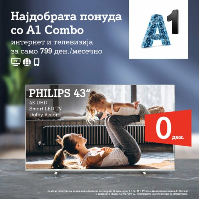 Од денеска, во портфолиото на А1 Македонија, како дел од понудата во A1 Combo достапна е најновата промоција со која постоечките и нови корисници покрај супер брз и стабилен интернет, ТВ со најквалитетна слика на телекомуникацискиот пазар, добиваат и можност за попуст и претплата од само 799 денари месечно во A1 Combo M.