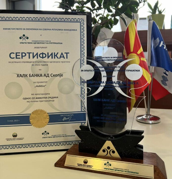 Министерството за економија по 13ти пат го организираше изборот на најдобри општествено одговорни практики на претпријатијата. Од пријавените 19 проекти, Министерството додели Награди за најдобрите општествено одговорни практики на македонските претпријатија во 2021 година на пет претпријатија, за реализирани проекти во различни категории. За најдобар проект во доменот на заштита на животната средина е избран ХалкЕко на Халкбанк.