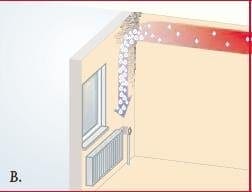 Б. Насекаде во живеалиштето, каде температурата е пониска може да стане критично влажно. На пример во спалната каде температурата е обично пониска. (Ладната чаша во летно време се испотува во контакт со топлиот воздух од кој ја кондензира влагата.) Истото се случува при контакт на топлиот воздух што го издишуваме со ладните ѕидови и стакла од спалната.