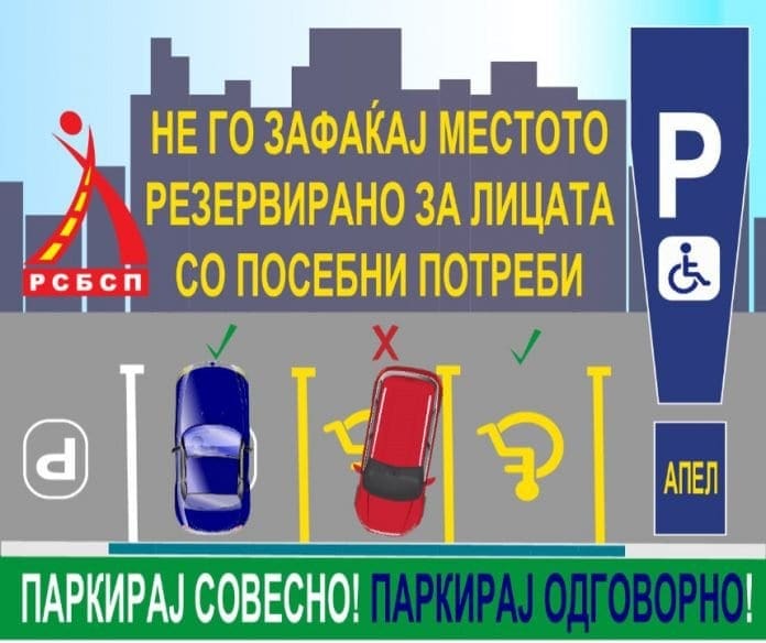Затоа, РСБСП апелира возачите да покажат повисоко ниво на култура, етика и одговорност, да паркираат совесно и свесно и да не ги зафаќаат местата резервирани за возилата на лицата со посебни потреби. Оставете ги слободни паркинг места на оние на кои им се најпотребни. Проблемите со кои се соочуваат лицата со посебни потреби се доволни и не дозволувајте вие со вашето однесување дополнително да им го отежнувате нивното секојдневно функционирање. Тоа е ваша хумана и ваша законска обврска.