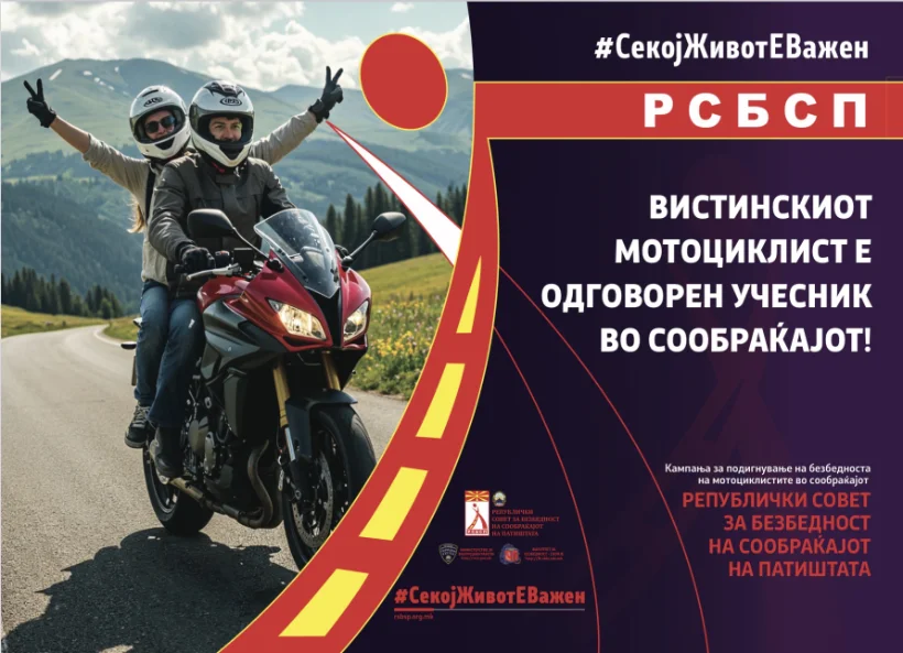 Републичкиот совет за безбедност на сообраќајот на патиштата започнува кампања насочена кон унапредување на безбедноста во сообраќајот на мотоциклистите која ќе се реализира во соработка со МВР, Факултет за Безбедност-Скопје, Мотоциклистичката федерација.