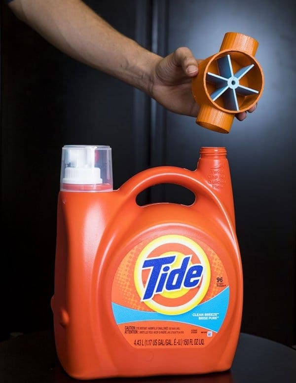 Кога ќе го ставите овој пластичен дел, при истекувањето на детергентот тој почнува да врти и да креира кинетичка енергија, која е доволна за да се поврзе на Wi-Fi локалната мрежа и дури и да прати точни податоци за количината на детергентот во бинарен 1 и 0 код.