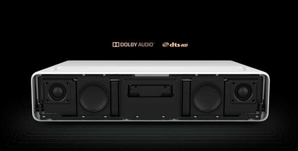 Голема предност во однос на обичните проектори е што овој може да стои буквално пред ѕидот – работи на оддалеченост од 5 до 50 сантиметри, а во него има и вградени звучници.