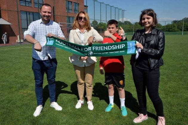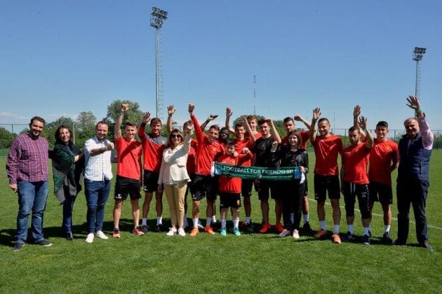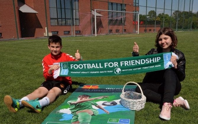 Скопје, Македонија – 20.04.2018 – Во рамки на почетокот на 6. Сезона на Меѓународниот детски социјален проект “ФУДБАЛ ЗА ПРИЈАТЕЛСТВО”, под покровителство на Компанијата “Газпром” А.Д., како дел од стартот на локалните активности поврзани со овој проект, Агенцијата за односи со јавност “АПРА Портер Новелли Македонија“ заедно со Фудбалскиот Клуб “Вардар“ ги претставија Младите Амбасадори – Учесници во проектот, Максим Цониќ (Млад Фудбалер) и Ева Јакимовска (Млад Новинар) пред Македонската публика. Децата амбасадори на проектот го посетија Тренинг Кампот на Фудбалскиот Клуб “Вардар“, во чии рамки тренира Максим, како дел од нивната Младинска Фудбалска Школа. Делегацијата која ќе ја претставува Македонија во рамки на овој проект беше пречекана од Директорот на Тренинг Кампот на ФК “Вардар“, г-дин Кирил Кироски и дел од фудбалерите од првиот тим на Клубот.