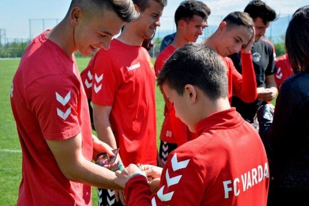 На средбата, децата амбасадори ја презентираа програмата на “Фудбал за Пријателство 2018“ на Фудбалерите од првиот тим на ФК “Вардар“, им подарија “Алки на Пријателство“ – главен симбол на проектот и разговараа за деветте суштински вредности на кои овој проект поттикнува. Познатите фудбалери од свое лично искуство ја потврдија важноста на посветеноста, фер-играта и здравјето во кариерата на фудбалерите. Истакнаа дека покрај континуираното вложување во себе и работење на подобрување на своите перформанси, од клучно значење за нив се и мирот, пријателството, еднаквоста и традицијата – вредности кои сите треба да ги следиме и според кои треба да работиме, особено кога станува збор за колективните тимски напори, како што се фудбалот и спортот во целина.