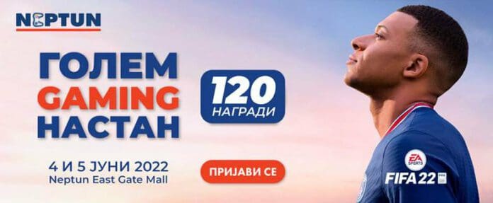 На 4 и 5 јуни во Нептун Ист Гејт Мол ќе се одржи голем GAMING настан. Сите гејмери, сите „зависници“ од адреналин, а особено фудбал фановите се повикани на предизвикот од Нептун. Во пресрет на светскиот ФИФА куп 2022, дводневниот настан организиран од Нептун ќе понуди пред се добра забава и дружење, но и 120 вредни награди за сите натпреварувачи.