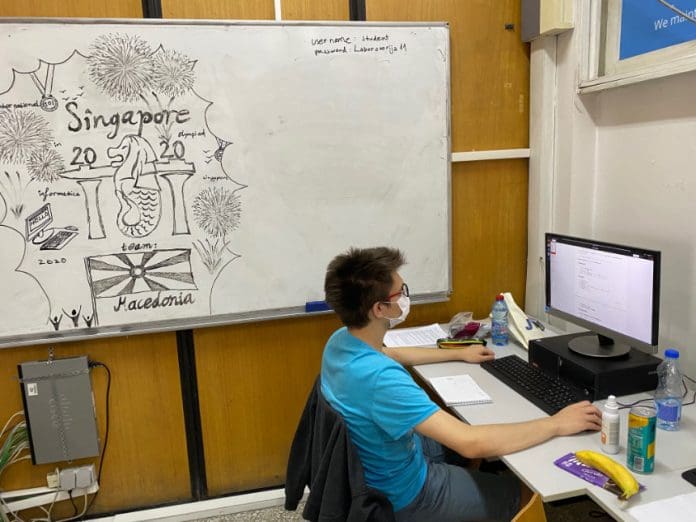 Интернационалната олимпијада по информатика се спроведуваше онлајн, при што натпреварувачите од секој национален тим беа надгледувани од страна на нивните лидери. Македонскиот тим се натпреваруваше од просториите на Факултетот за информатички науки и компјутерско инженерство (ФИНКИ), кој ги овозможи сите услови за квалитетно техничко поврзување со Сингапур.