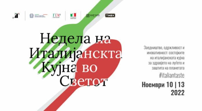 Со особена чест и задоволство Ве покануваме на настаните во рамки 7-мата Недела на италијанска кујна во Скопје, во организација на Амбасадата на Р. Италија и ITA – Italian Trade Agency Skopje, во соработка со East Gate Mall и TINEX.