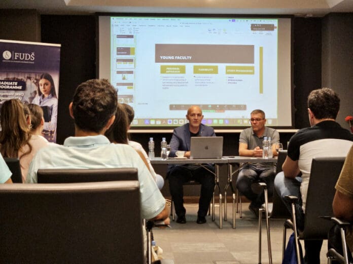 За можностите за упис на Факултетот за информатички студии, говореше и асистентот на ФИШ Игор Трајановски дообјаснувајќи дека постапката за третиот уписен рок оди преку државната платформа. Тој ги упати потенцијалните студенти, за повеќе детали, да ги посетат и интернет страниците https://www.fuds.si/en/ и https://www.fis.unm.si/.