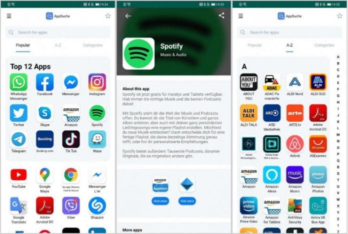 Откриена во Германија, апликацијата AppSearch им овозможува на корисниците да ги најдат апликации како Facebook, Messenger, WhatsApp, Instagram и други. Апликациите не може да се симнат директно од оваа апликација, односно истата само го олеснува нивното барање, па можат да се симнат од трета страна до која може да се дојде преку оваа апликација.