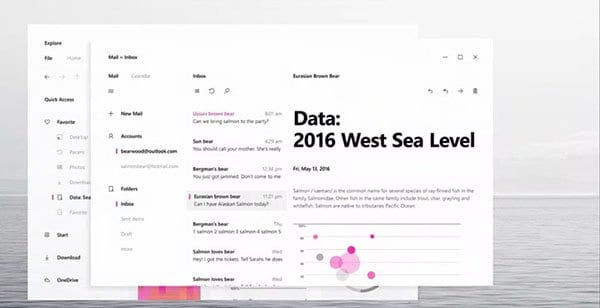 Самиот изглед е еволуција на “Metro” дизајнот претставен со Windows Phone и подоцна Windows 8, па не очекувајте драматични промени. Како што нагласи Microsoft, новиот “Fluent Design System” треба да донесе хармонично, интуитивно, инклузивно и респонзивно користење меѓу различните уреди.