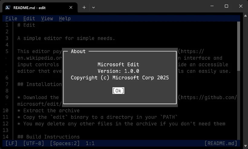 Microsoft Edit е направена со отворен код и е развиена во Rust.