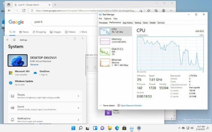 Програмерите веќе ја искористија оваа нова можност и го инсталираа Windows 11 на Google Pixel 6. Од сликите може да се види целосната инсталација на системот, како и функционирањето на апликациите.
