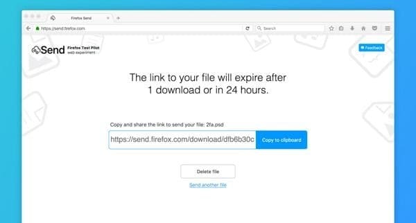 Mozilla, поточно Firefox Test Pilot делот од компанијата задолжен за воведување на нови сервиси, го претстави Firefox Send. Се работи за сервис наменет за испраќање на големи фајлови, до 1 GB бесплатно.