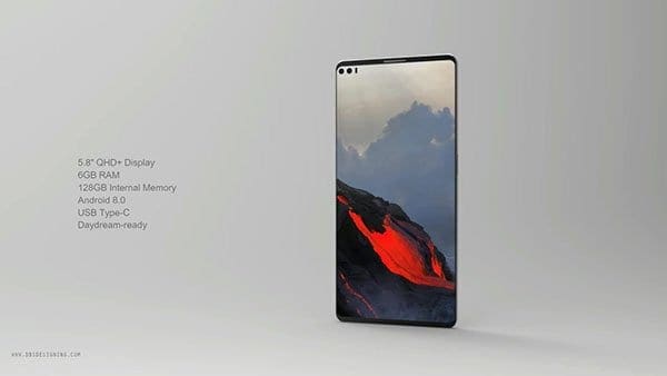 Сепак, не може да се одолее на смартфон без рамка околу дисплејот и камери вградени во него, макар и да се работи за концепт. Дизајнерот го замислува дисплејот со големина од 5,8 инчи и Quad HD+ резолуција, нешто слично на оној во Galaxy S8.