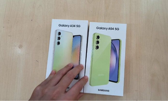Двата телефони се разликуваат на предната страна кај „селфи“ камерата, односно кај Galaxy A54 истата е во форма на мала дупка, додека кај Galaxy A34 е споена со горниот дел.