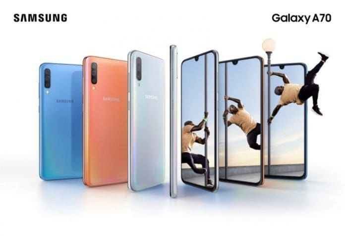 Сеул, Кореа – 28 март, 2019 – Компанијата Самсунг Електроникс (Samsung Electronics Co., Ltd.) го претстави Галакси А70 (Galaxy A70), најновиот паметен телефон на Самсунг дел од Галакси А серијата смартфони. Создаден со најновите иновации и надградени карактеристики на Самсунг, Галакси А70 пристигнува со стилски дизајн, “Infinity“ екран, подобрена тројна камера, моќна батерија и функции за беспрекорна поврзаност. Најновиот паметен телефон на Самсунг е дизајниран за љубителите на дигиталниот свет кои сакаат да фотографираат, да се поврзуваат и да го споделат секој миг во моментот на случување додека го живеат животот со полна пареа.