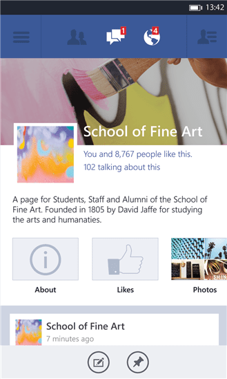 Новата, односно актуелната Facebook алпикација донесува целосно нов дизајн, подобри перформанси, поддршка за различни резолуции на екранот, поддршка за слики во висока резолуција, споделување на објави, слики и видеа, поддршка за повеќе јазици…