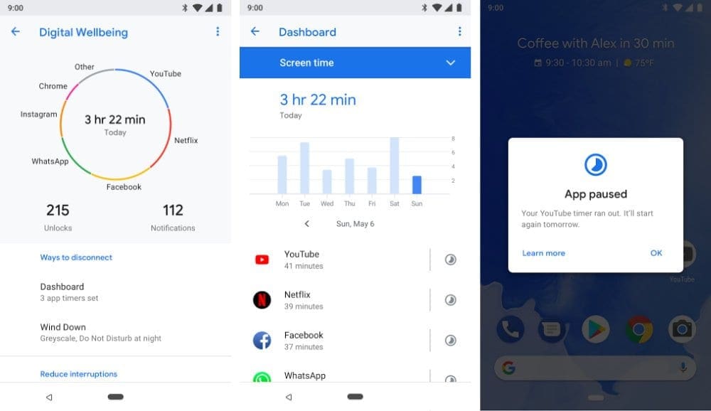 Google ја најави својата функција со името Digital Wellbeing уште во мај оваа година за време на презентацијата на Android 9, па по бета тестирање одреден период, оваа функција во форма на посебна апликација е достапна во Play Store.