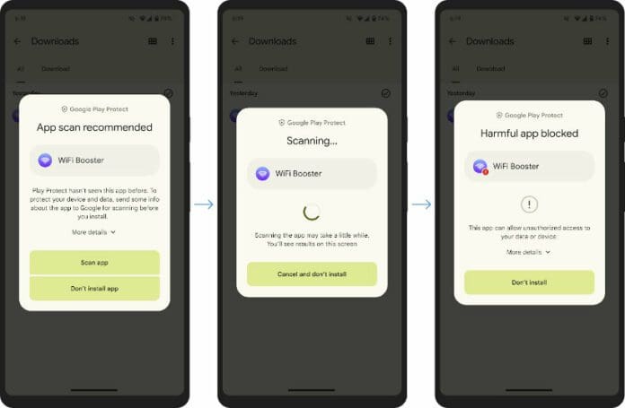 Поради тоа, Google воведува нов вид на проверка на апликациите кои се инсталираат надвор од Play Store. Кога се инсталираат апликации кои не се препознаени, односно претходно проверени, на корисниците ќе им биде предложено истите да ги скенираат.