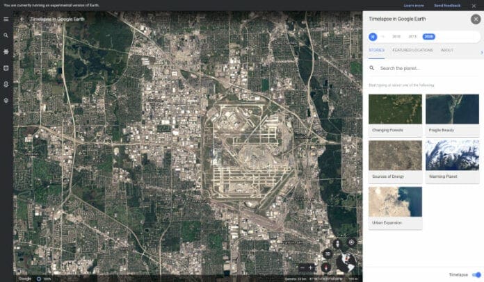 Во најголемата надградба на Google Earth од 2017 година, Google воведе нова функција со која било кој дел од планетата може да се разгледува како се има менувано во изминатите 37 години. Се работи за 24 милиони сателитски слики кои се направени да овозможат интерактивно искуство.