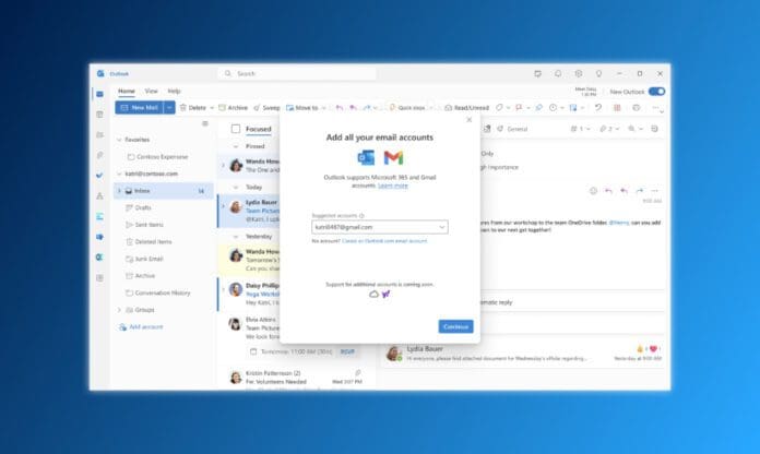 Новиот Outlook добива нова можност која ќе ја направи апликацијата многу повеќе погодна за секојдневно користење. Се работи за поддршка за Gmail сметки, а досега можеа да се приклучат само Microsoft сметки. За во иднина се најавува поддршка и за Yahoo, iCloud сметки, како и IMAP сметки од трети страни.