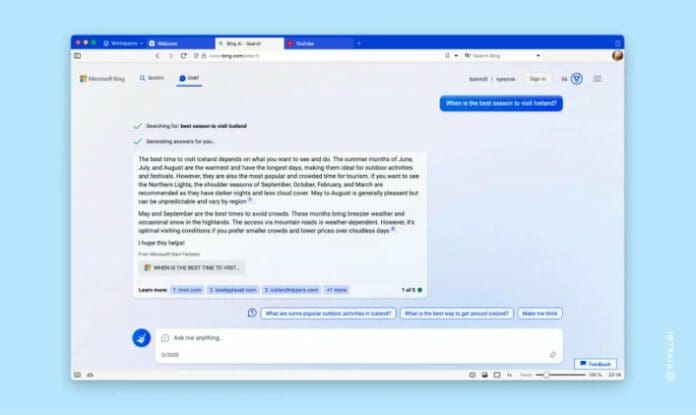 Најновата верзија од Vivaldi прелистувачот, односно Vivaldi 6.1, им овозможува на корисниците да го користат новиот Bing Chat, нешто што се’ уште не им е овозможено на корисниците кои не го користат Microsoft Edge.