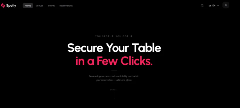 Spotly е дигитална платформа за резервации и управување со посетеност која им овозможува на гостите сигурно да резервираат место, а на угостителските објекти и организаторите поефикасно да управуваат со својот простор, резервации и настани. Платформата е развиена со фокус на едноставност, сигурност и подобрување на целокупното искуство при излегување.