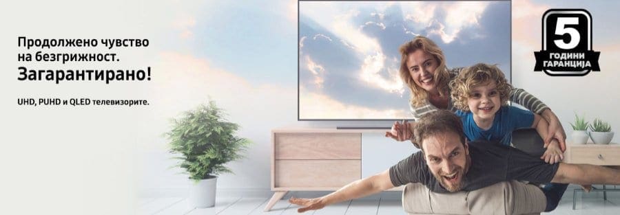 Скопје, Македонија – 7 ноември 2018 година – Со цел да им овозможи на своите корисници уште поголема сигурност и уживање во гледањето на содржини преку ТВ уредите, Компанијата Самсунг подготви нов “бран“ промотивни активности. Во период од 1 oктомври до 31 декември 2018 година, сите оние кои ќе купат Самсунг “UHD“ или “QLED“ ТВ уред од серијата “Н“ (“N”) од 2018 година ќе добијат 5 години гаранција.