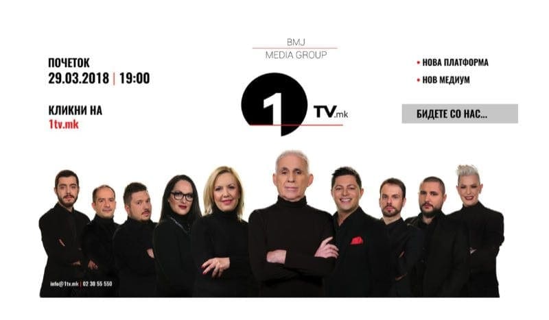 Скопје, Македонија – 28. март, 2018 – Македонскиот медиумски етер официјално ќе биде збогатен со нов медиум – Националната Телевизија “1ТВ“. Телевизијата ќе започне со емитување редовна програма во етер од 29.03.2018 година (19 часот) и ќе биде достапна за гледачите преку операторите – ОНЕ.ВИП, Телеком, Неотел, Тотал ТВ преку ЕОН, како и на Нет ТВ во целиот свет.
