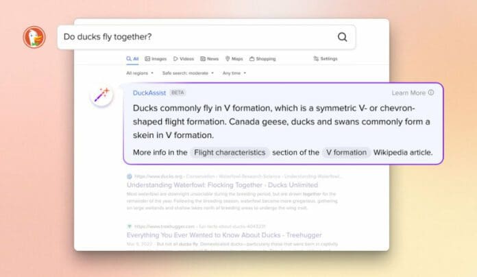 DuckAssist е новината која ја претставија од оваа компанија и за разлика од конкурентите, барем на почеток, истата не вклучува бот за разговори, каков што има Bing, на пример.