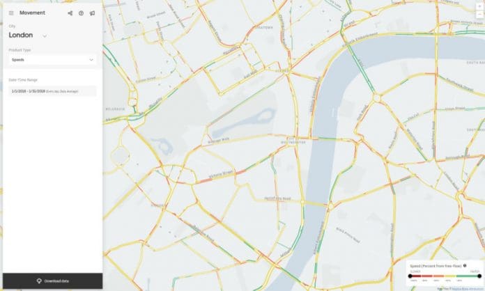 На мапата може да се види дека во голем дел од градовите брзината на движење е прилично ниска, што значи дека таму има големи гужви. Во некои такви градови се воведуваат такси за возилата кои сакаат да возат во централните подрачја каде гужвата е најголема.