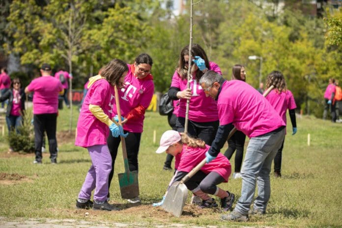 Со акцијата во соработка со Пакомак, се расчисти отпадот на детско игралиште во општината Аеродром и се посадија 100 нови дрвца. Во неделата кога се одбележува Денот на планетата Земја, волонтерите испратија порака за позелени и почисти урбани средини.