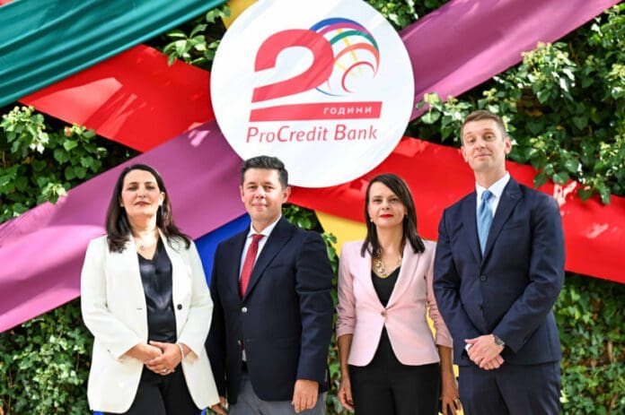 ПроКредит Банка вчера организираше прослава по повод 20 годишното постоење на македонскиот пазар. Во прекрасниот простор на ПроКредит Академијата на Велешко Езеро со над 850 гости, менаџерскиот тим на Банката беше домаќин на своите клиенти, видни личности од македонската банкарска индустрија, партнери и медиуми, меѓу кои и гувернерката на Народна банка на РСМ Анита Ангеловска-Бежоска и германската амбасадорка во земјава Петра Дрекслер.