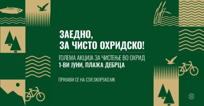 СКОПСКО ве повикува да се приклучите на големата еко-акција за чистење на Охридското Езеро, нашето непроценливо природно богатство кое заслужува целосна заштита и грижа. Оваа акција ќе се одржи на 1-ви јуни на плажата Дебрца (стар пат Охрид-Струга, во близина на реката Сатеска), и претставува одлична можност за сите граѓани, семејства и пријатели да се здружат во заедничката мисија за почиста животна средина.