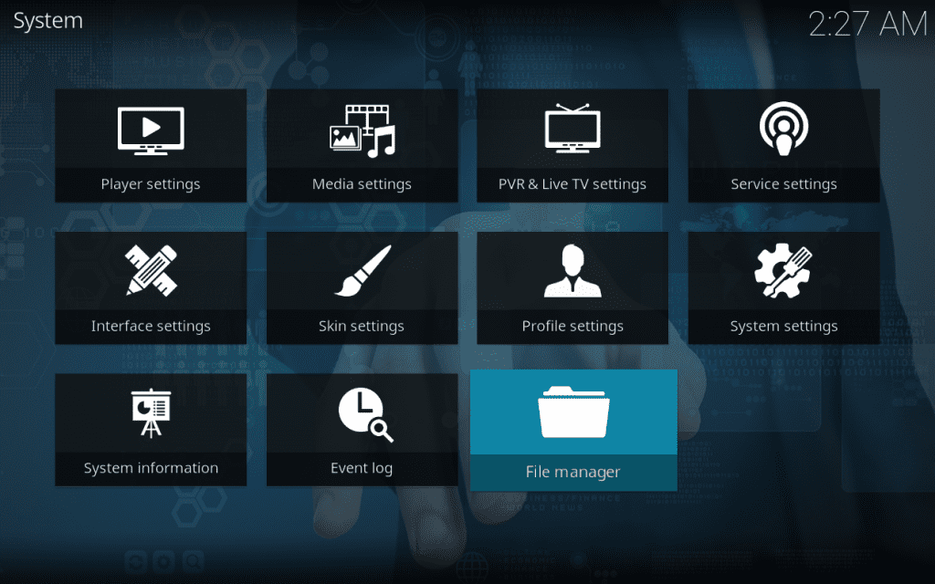 - Отворете ја Kodi, отидете во System и изберете File manager